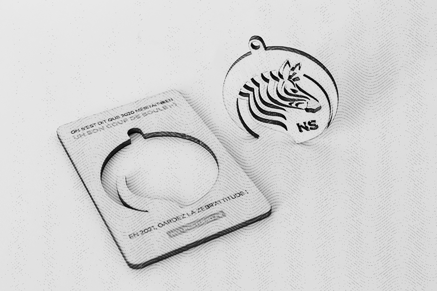Nous fabriquons vos objets en bois au Fablab de La Tour du Pin. Cet atelier encourage l’innovation en laissant l’accès à tout individu souhaitant utiliser librement des machines de fabrication. Nous réalisons avec eux d’autres produits comme les moules à chocolat personnalisés avec le logo des entreprises.